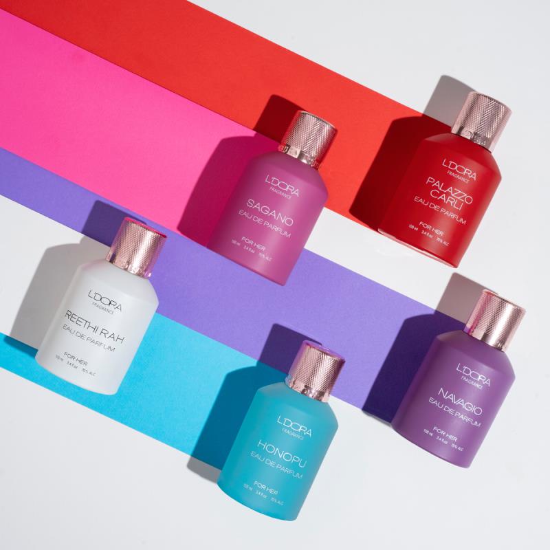 عطرهای لدورا فرگرنس که در حجم 100 میلیلیتر تولید و به بازار عرضه شده، کالکشن جدیدی با کیفیت مطلوب و ماندگاری بالا است که این مجموعه را در طبقهبندی عطرهای نیش قرار میدهد. در ادوپرفیومهای لدورا فرگرنس 100 میلیلیتر اسانسهای طبیعی متمایز و منحصر بهفرد فرانسوی، اسپانیایی و ایتالیایی و ... بهکار رفته است. این عطرها با توجه به سلایق مختلف در چندین رایحه زنانه، مردانه و اسپرت با طراحی جدید، متفاوت و بستهبندی شیک عرضه شده است.