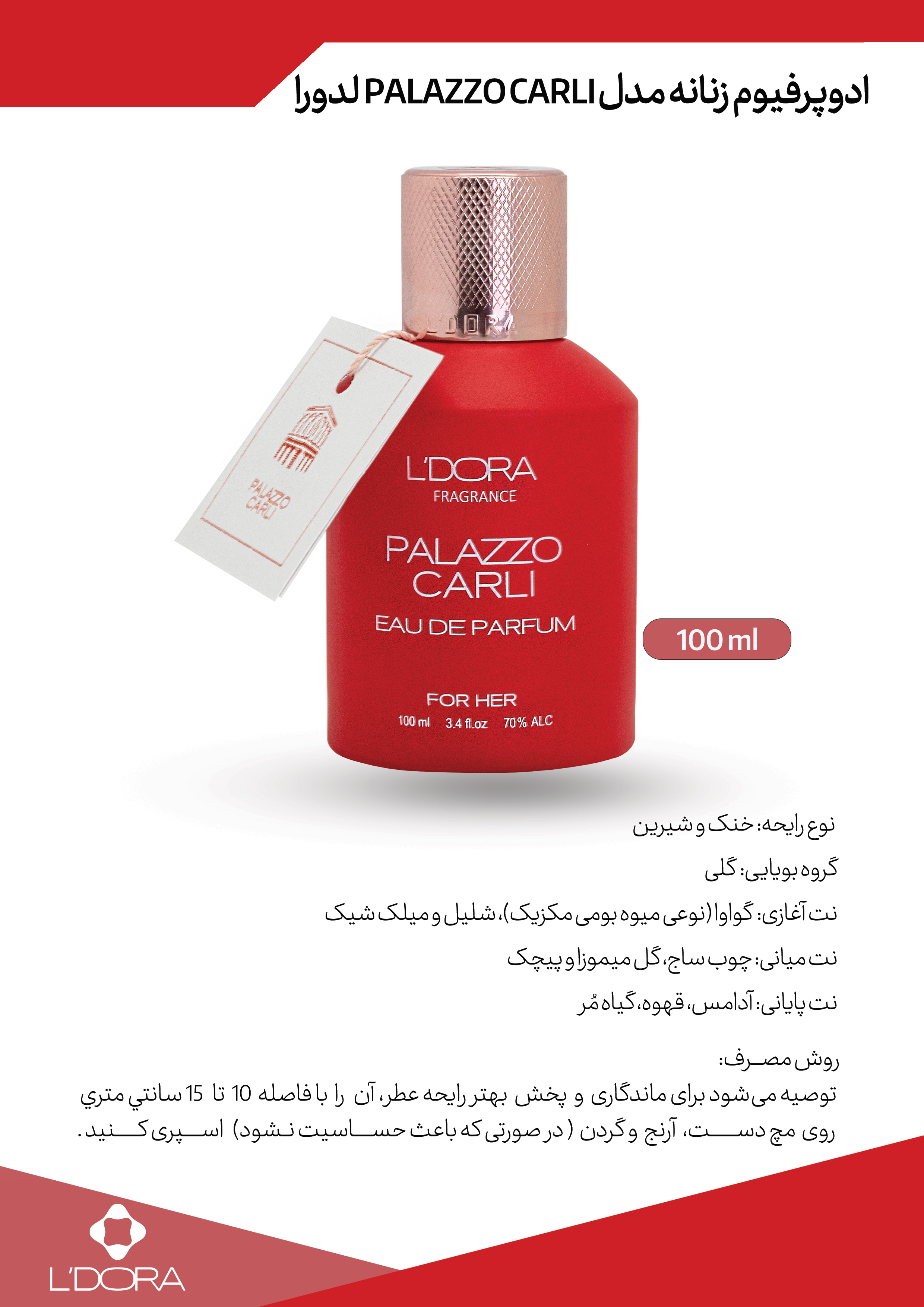 L’DORA FRAGRANCE PALAZZO CARLI EAU DE PARFUM FOR WOMEN, 100 ml
