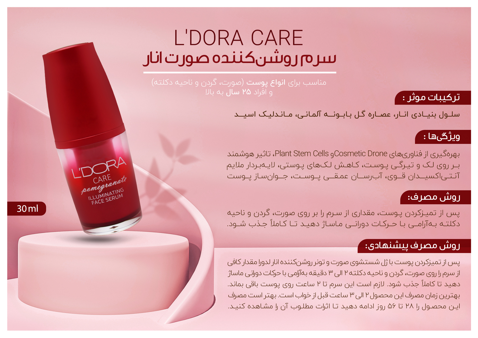 سرم روشنکننده صورت انار با بهرهگیری از فناوریهای Cosmetic Drone و Plant Stem Cells برای شناسایی، کنترل و کاهش لکهای پوستی به کار میرود. سلولهای بنیادی انار ماده موثره اصلی این محصول، سرشار از ویتامین C، آنتیاکسیدانهای قوی، اسیدهای آمینه، اسیدهای چرب و مواد معدنی است. این سرم نقش بسزایی در آبرسانی و درخشندگی طبیعی پوست داشته و علاوه بر این به نرمی، لطافت و جوانسازی پوست کمک میکند. ماندلیک اسید موجود در فرمولاسیون سرم روشنکننده انار با لایهبرداری ملایم باعث بهبود و رفع لکهای پوستی شده و ظاهر پوست را روشن و شفاف میکند.