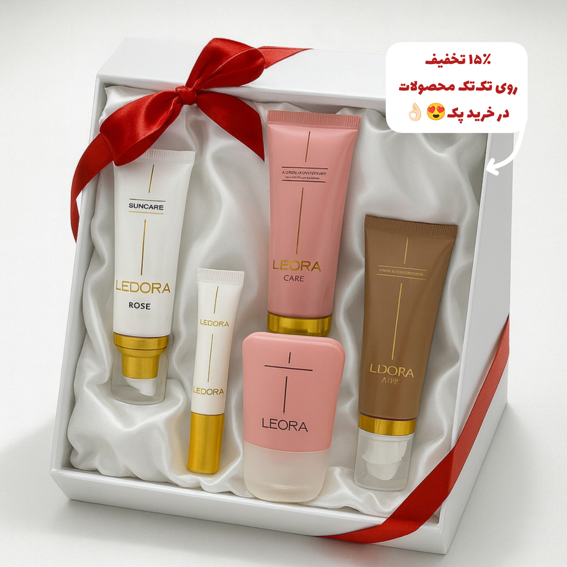 پک تخصصی مراقبت پوست لدورا یک روتین کامل و هماهنگ برای پاکسازی، آبرسانی، جوانسازی و محافظت روزانه از پوست است.