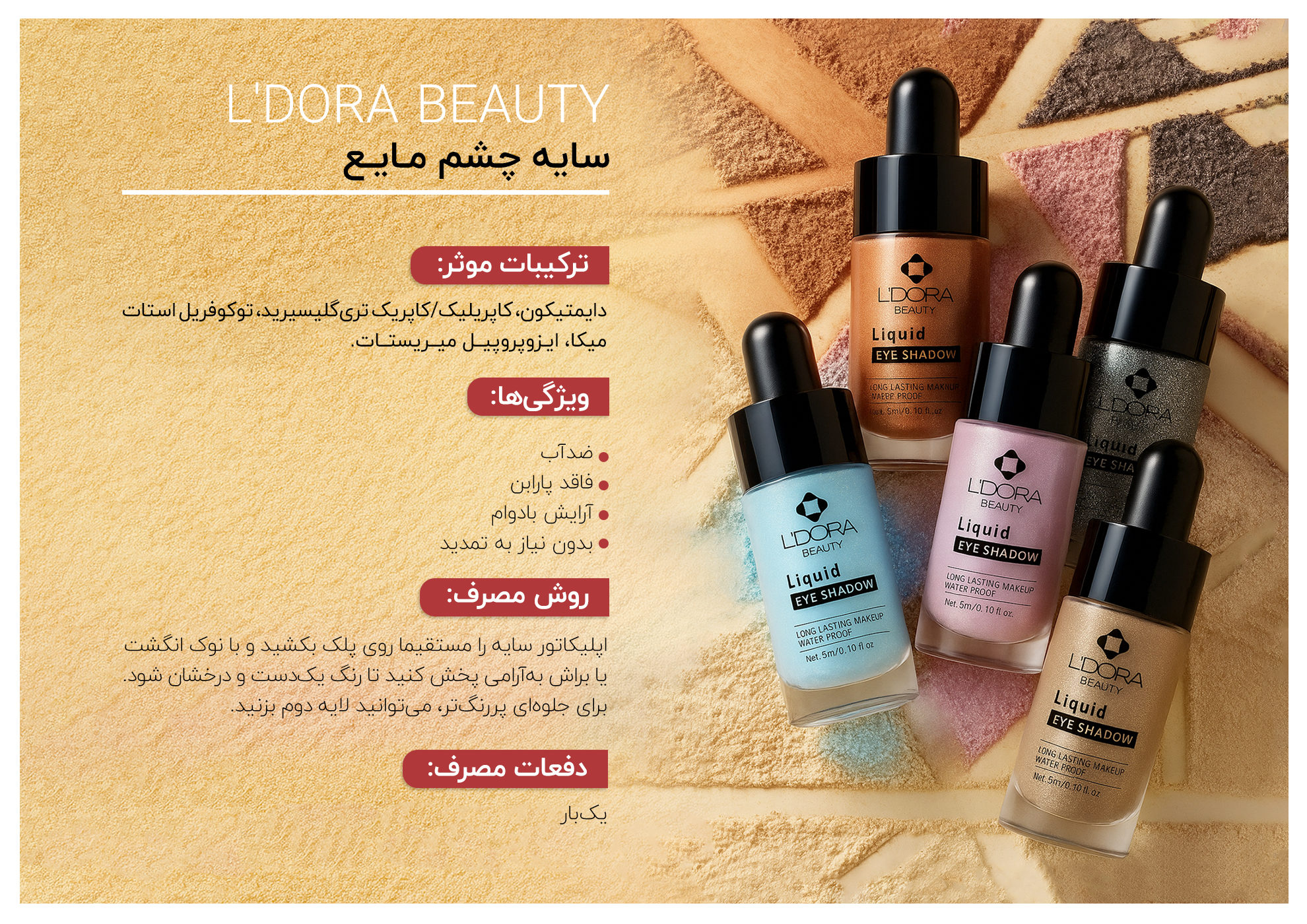 ویژگیها :: آرایش بادوام، ضد آب، بدون نیاز به تمدید، فاقد پارابن