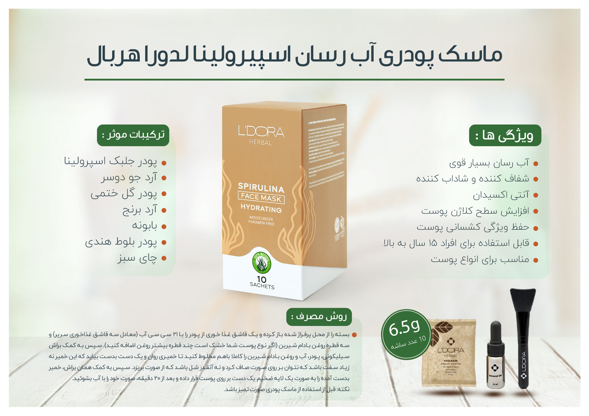 ماسک پودری اسپیرولینا آب رسان لدورا هربال 10 عددی